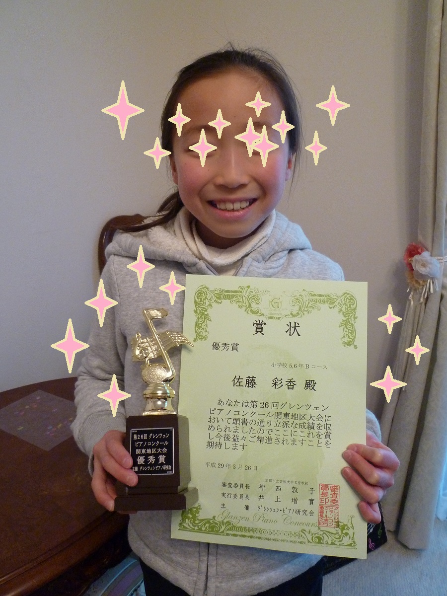 小5の Aちゃんが、見事 優秀賞を 受賞されました!