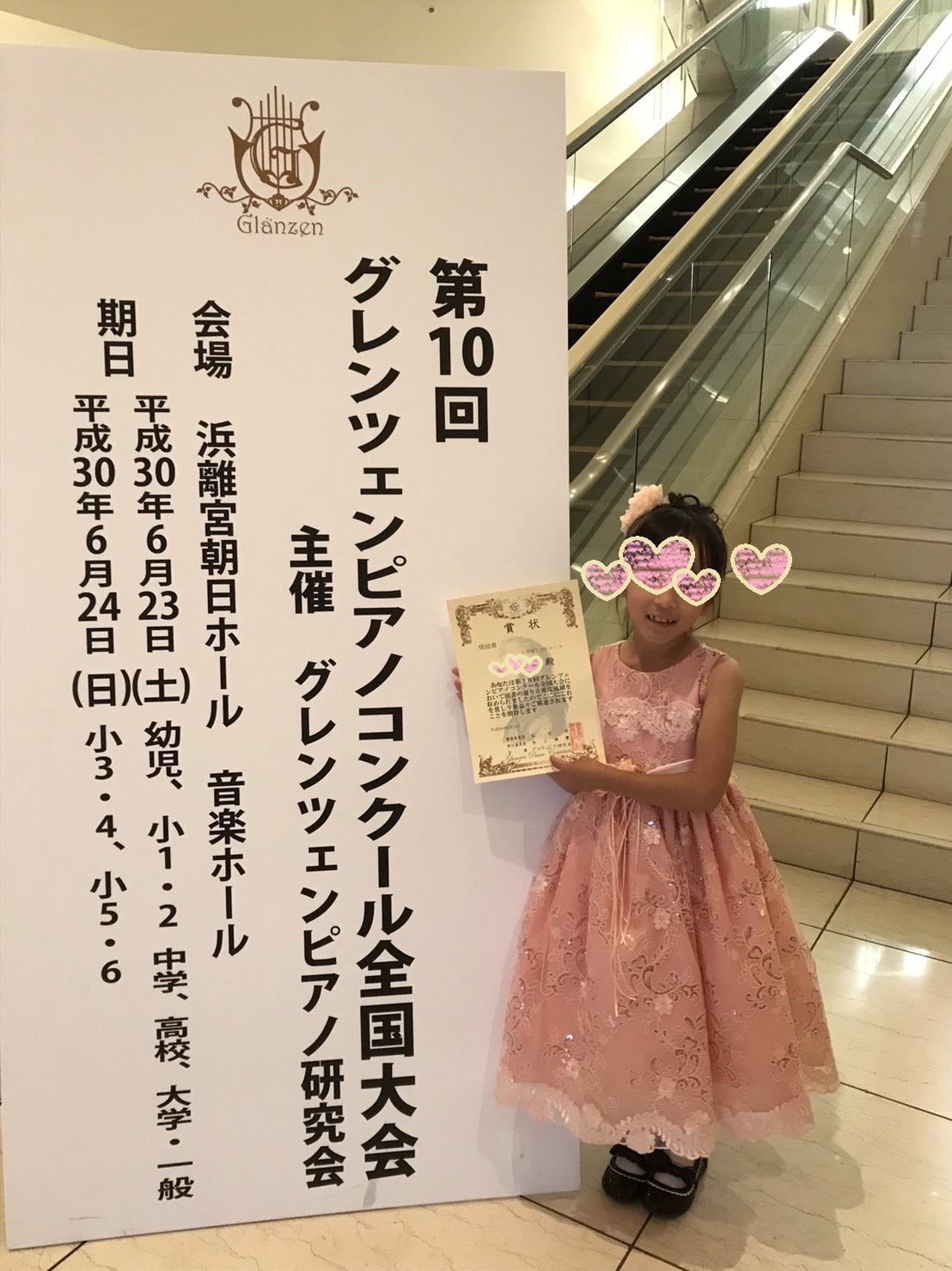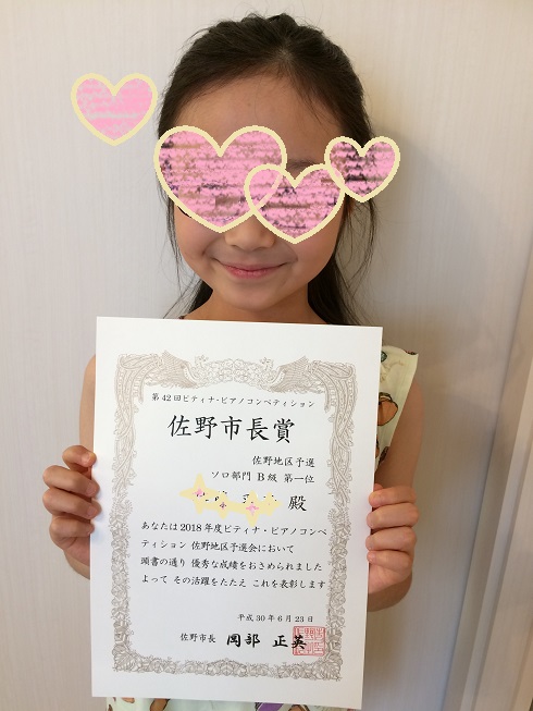 23日(土)には、小2のSちゃんが グレンツェンピアノコンクールの