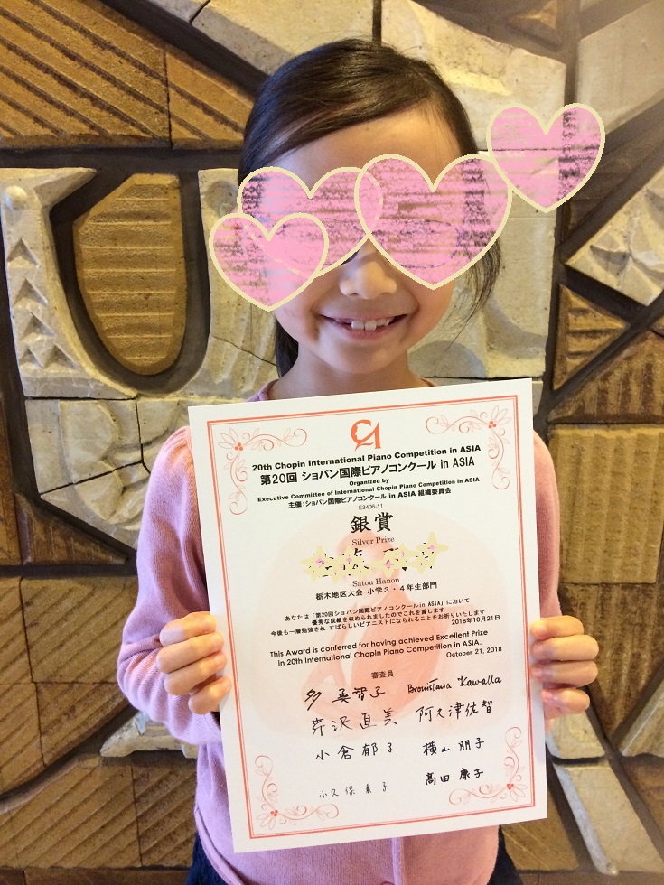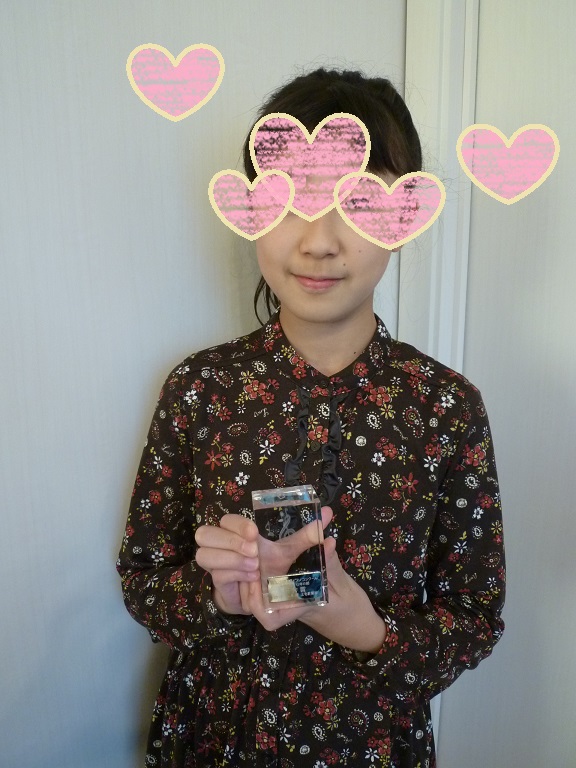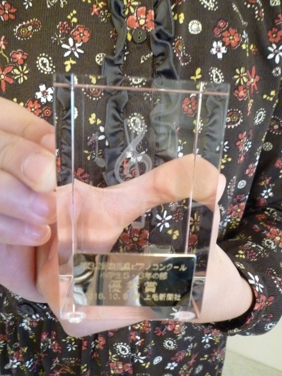 先日、群馬県ピアノコンクール 本選での 優秀賞プレートが