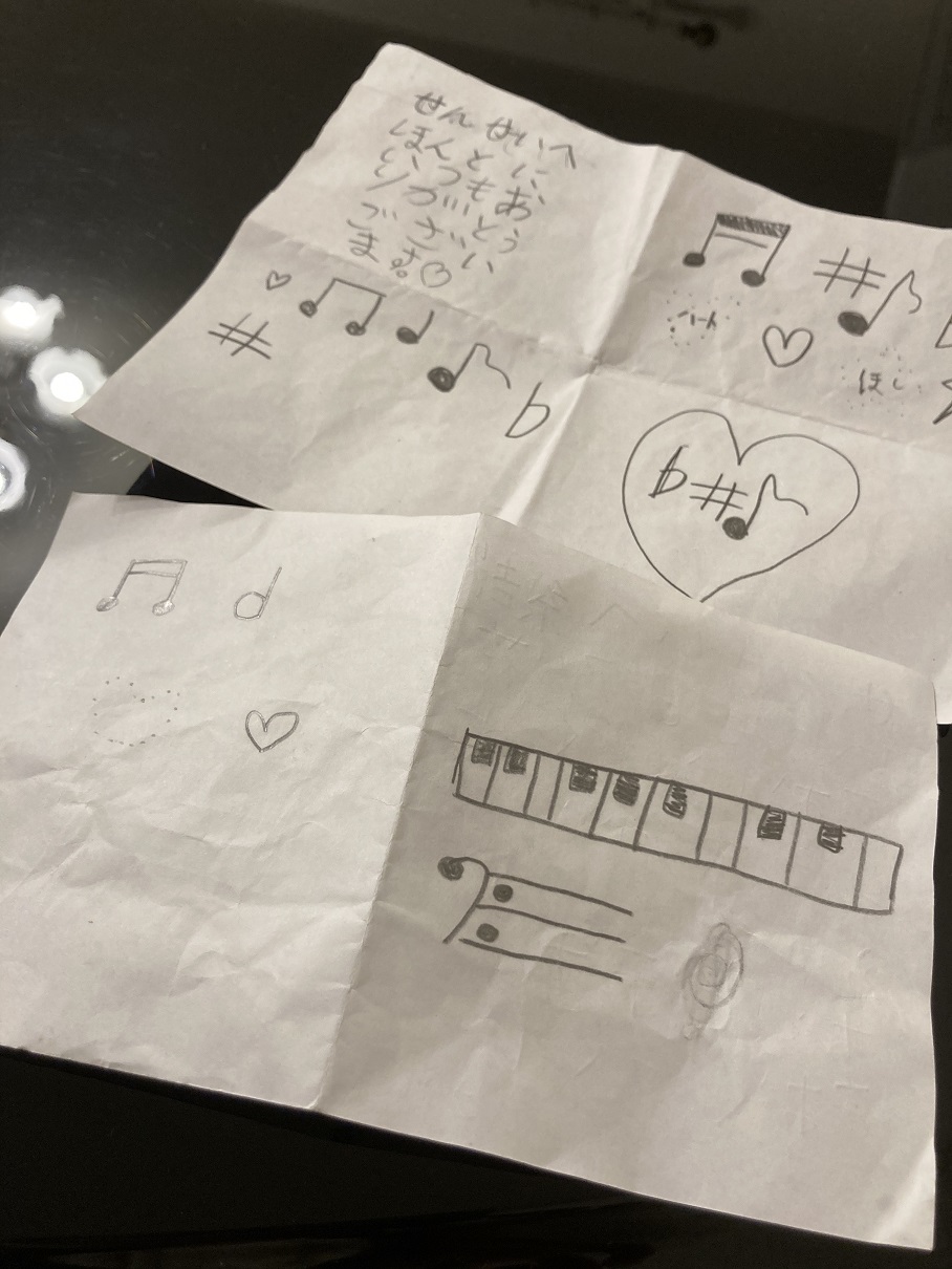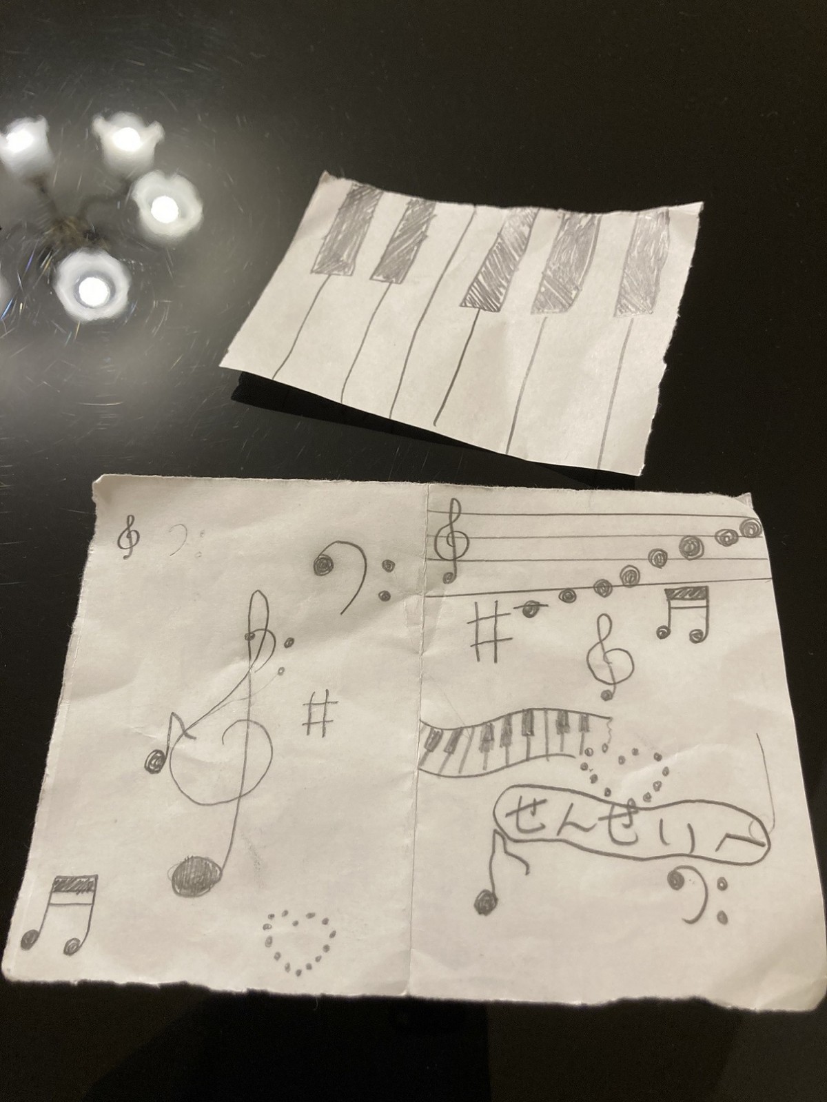 そんな Yちゃんが、レッスン前に「これね、Yちゃんと一緒に 書いたの」と・・・