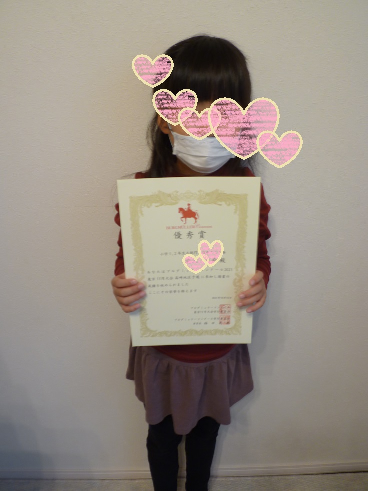 小1のNちゃんも、小1・2年生部門にて、優秀賞!