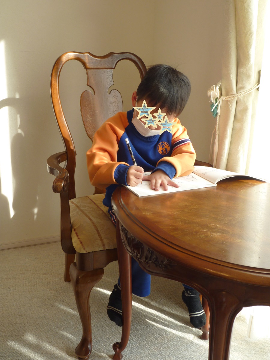 いつも元気いっぱい動き回るRくんの 真剣に書き取る姿が