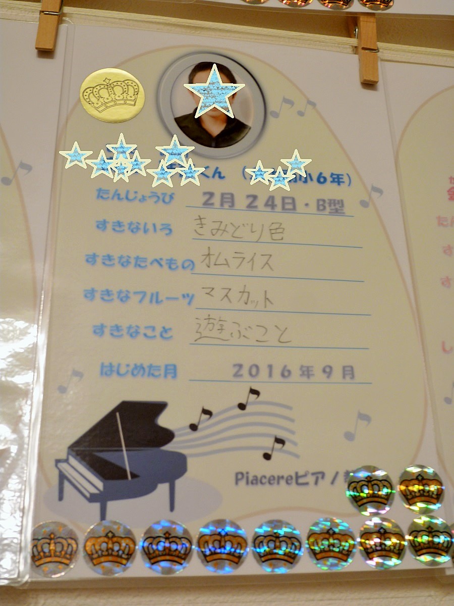楽譜に沢山のシールを貼ってきてくれるHちゃん♪