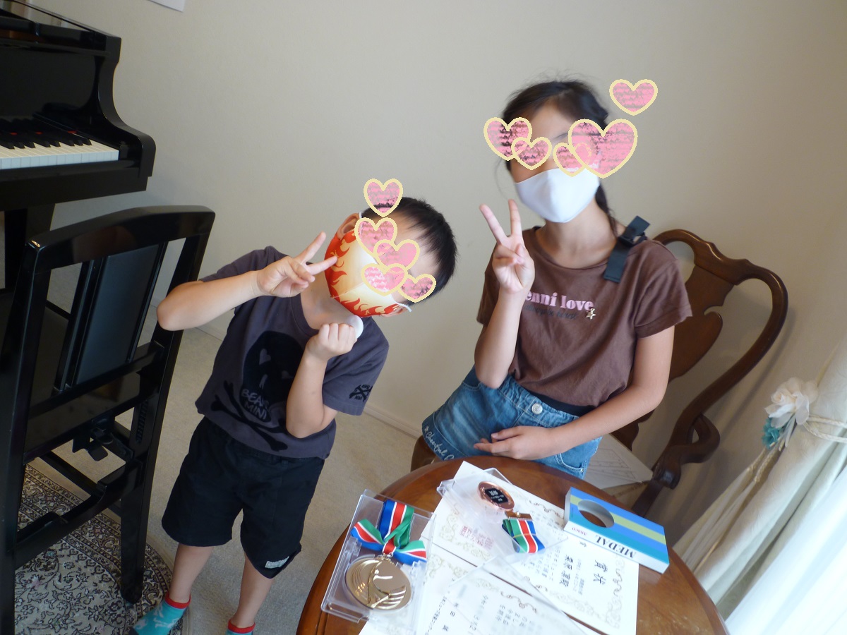 後日、RちゃんとRくんが頂いたメダルと賞状を持ってきて