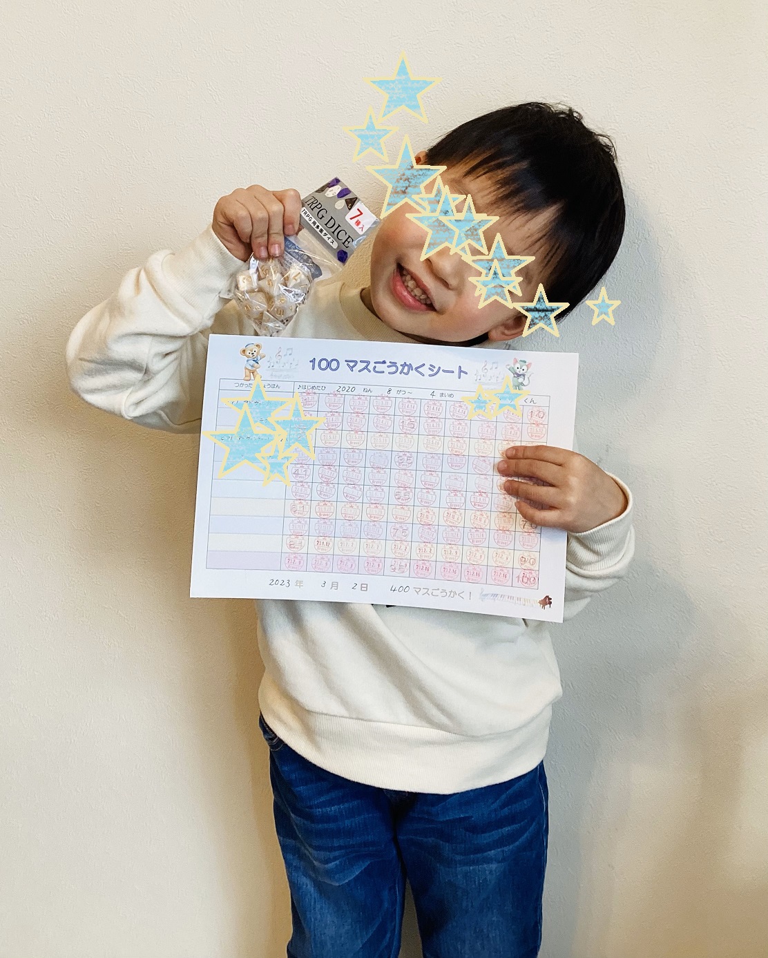 Sちゃんは 初めての100マス達成♪