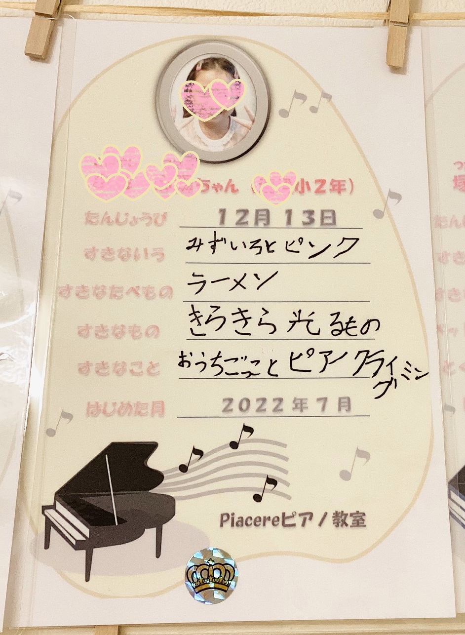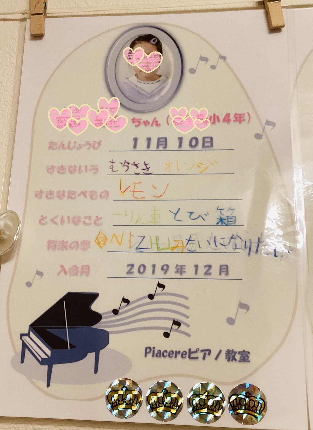 宿題の曲を 毎回すべて丁寧に弾いてきてくれるYちゃん♪