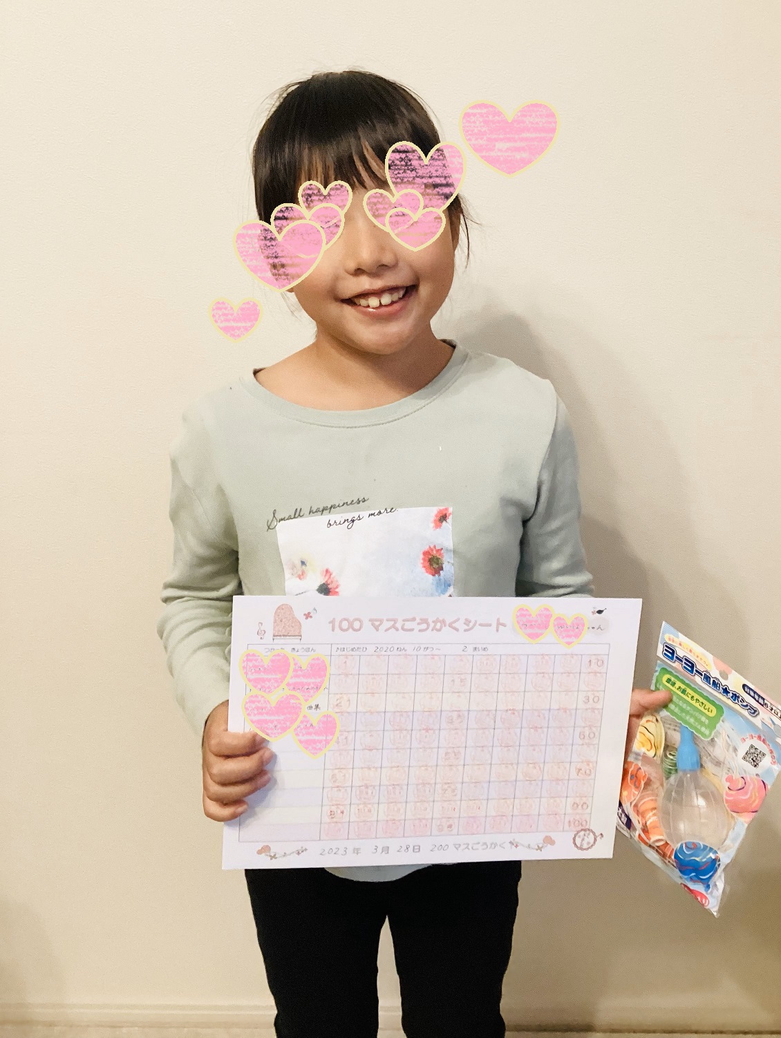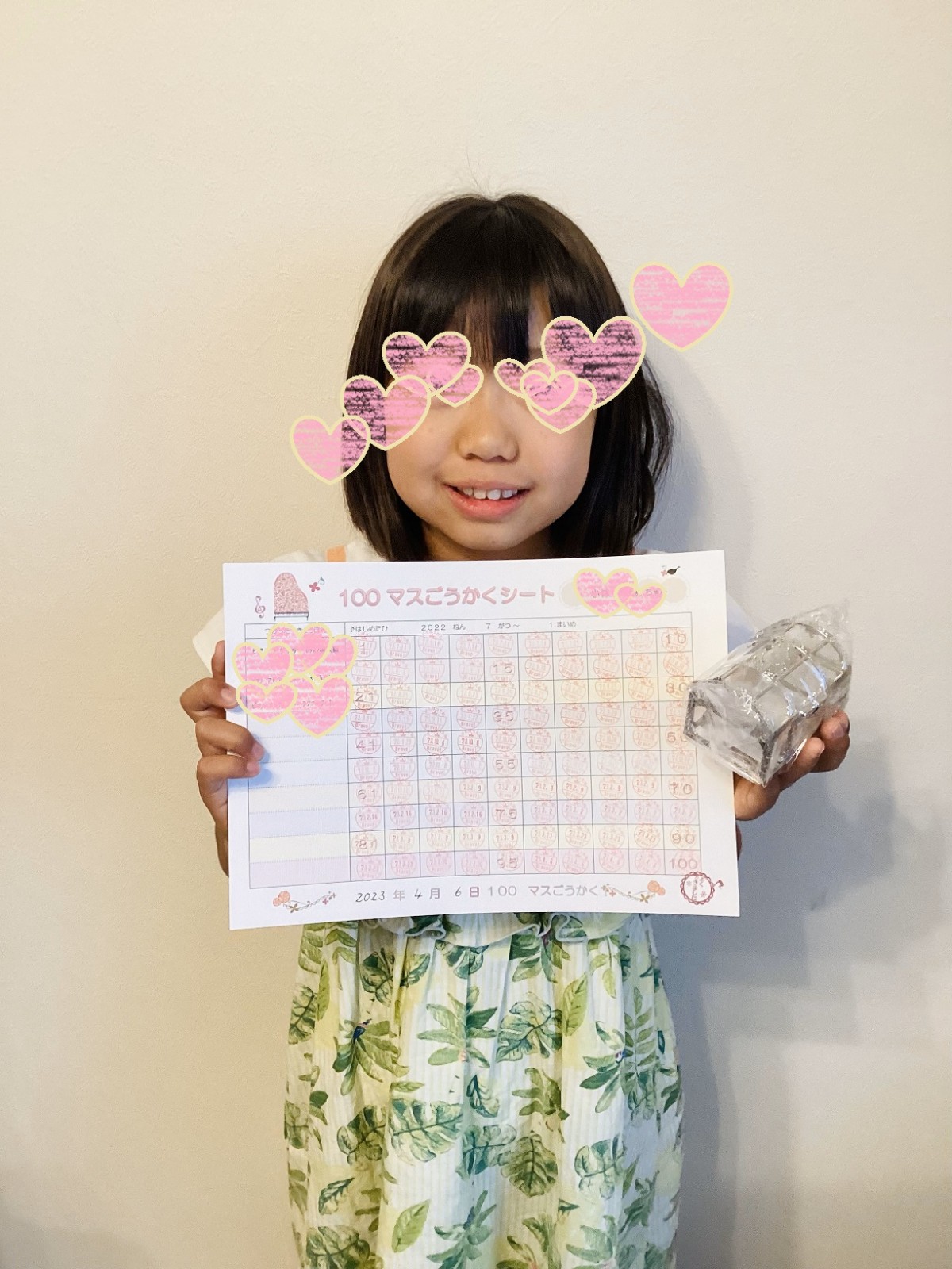 4月の最初のレッスンで、Kちゃん初の100マス更新♪