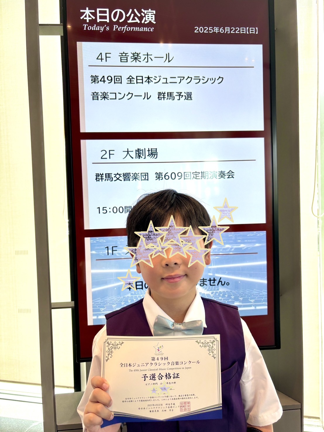 全日本ジュニアクラシック音楽コンクール 群馬予選に参加。