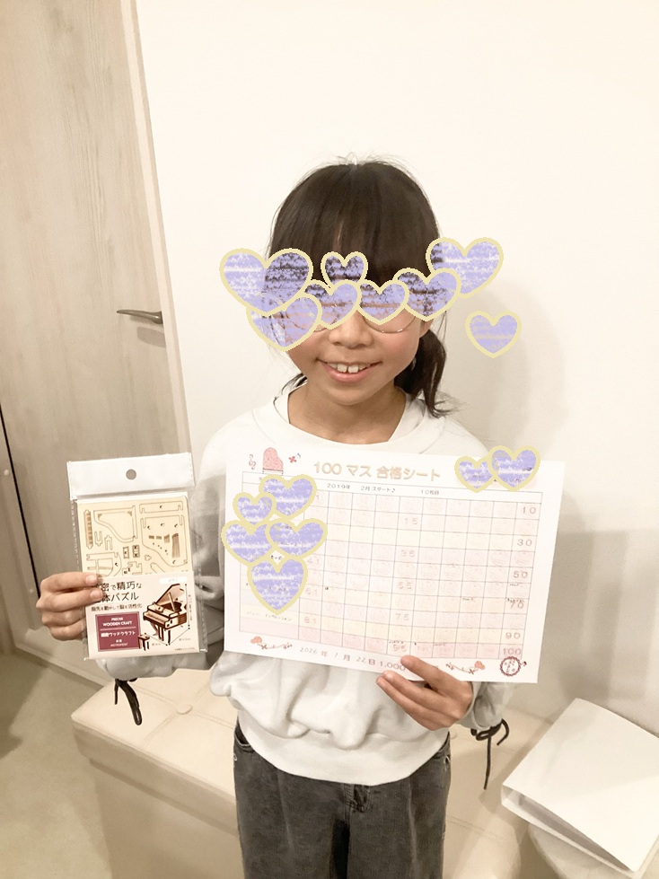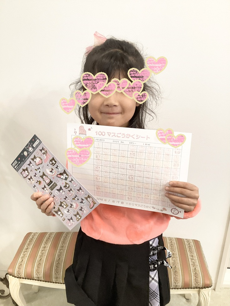 小5のMちゃんは途中入会のため初100マス!おめでとう!