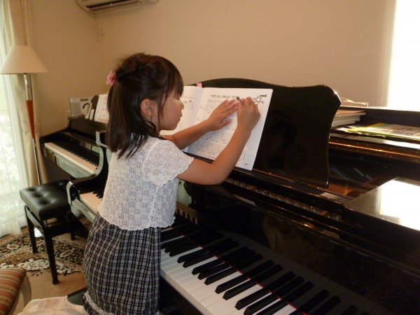 お家で 宿題の先の曲を 1人で譜読みしながら 弾いていたり、