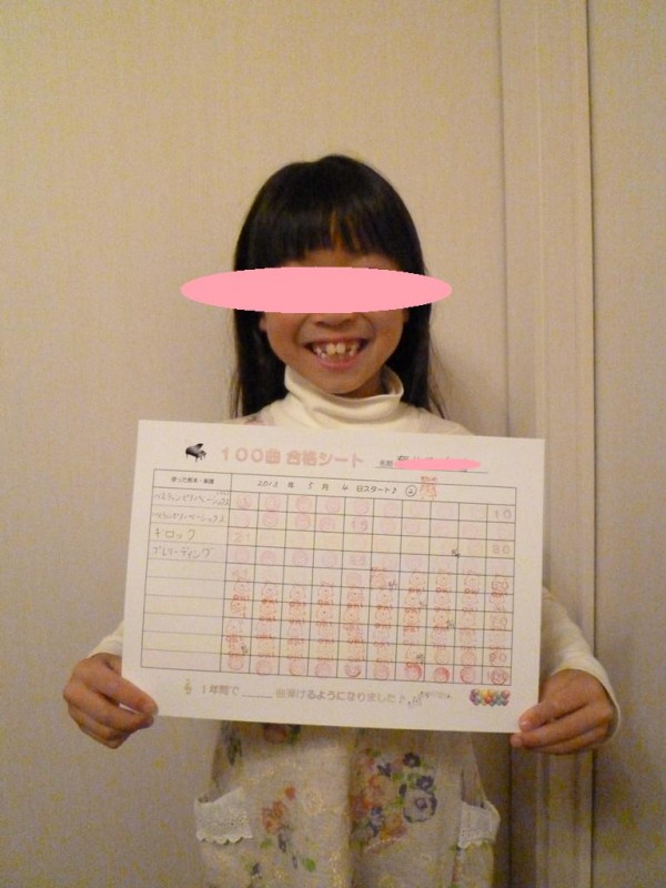 昨年200曲合格していた 小2のAちゃんは、2年目に入り さらに200曲合格、