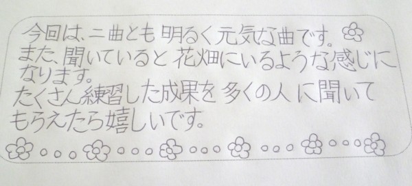 素敵なイメージと、多くの人に聴いてもらいたい と書いてくれた 小6の Fちゃん。