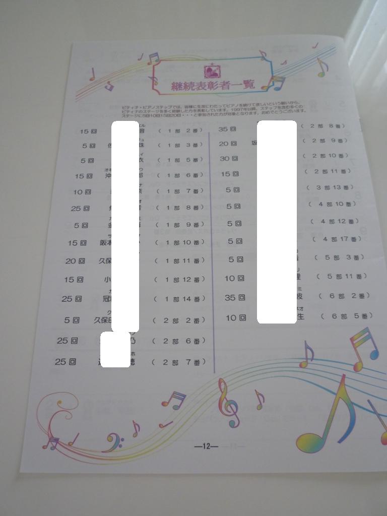 ピアノステップを含む、ピティナのステージに参加した回数で 表彰されるものですが、