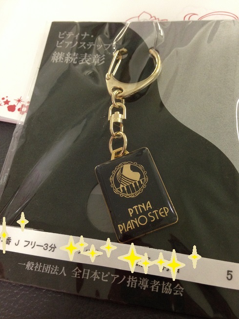 記念品の キーホルダー裏面には 金で 「5」 と刻まれています。